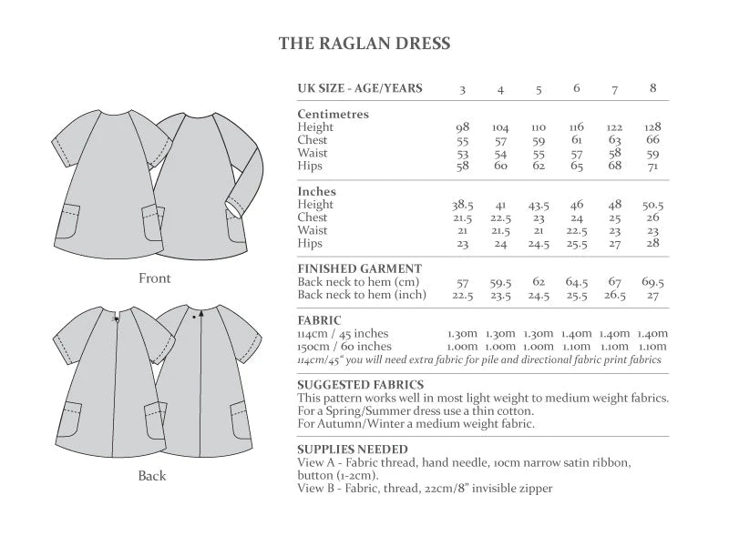 THE RAGLAN DRESS - Ages 3-8 Years Sewing Pattern By The Avid Seamstress